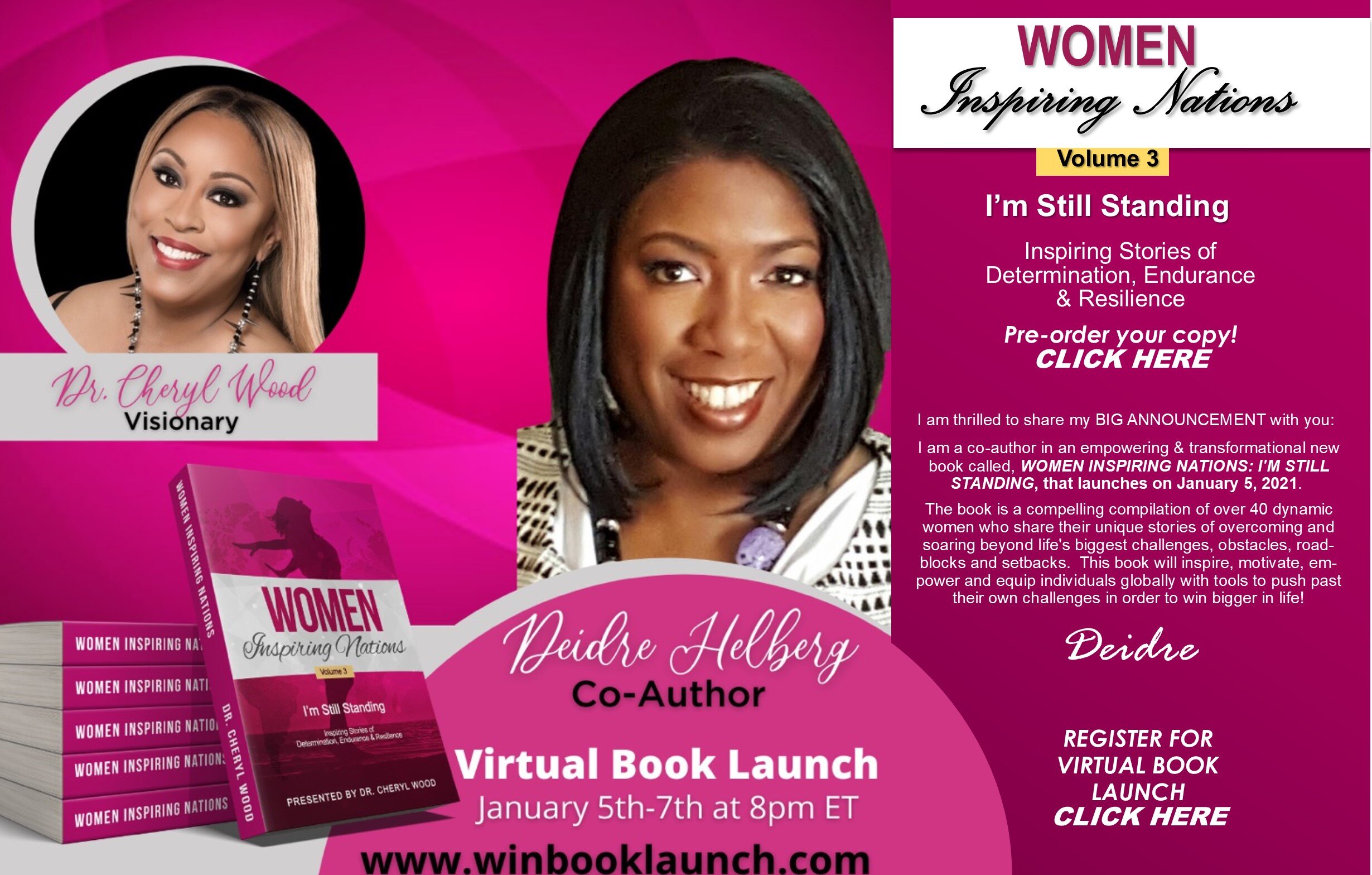 The Women Inspiring Nations series is dedicated to women by women. This powerful collection of empowering personal stories demonstrates the bold, tenacious, and resilient spirit of women globally. Each of the co-authors of Women Inspiring Nations Volume 3 boldly shares her “I’m Still Standing” story which encompasses her unique struggles and how she overcame her challenges to find ultimate success. Women Inspiring Nations Volume 3 will propel you to embrace the belief that no struggle can hold you back from fulfilling your destiny unless you allow it to.